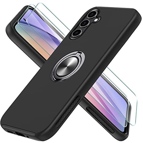 Guisessy Cover per Samsung Galaxy A54 5G e 2 Pellicola protettiva in vetro temperato, resistente agli urti, doppio strato, con supporto stabile per l'anello delle dita - Nero