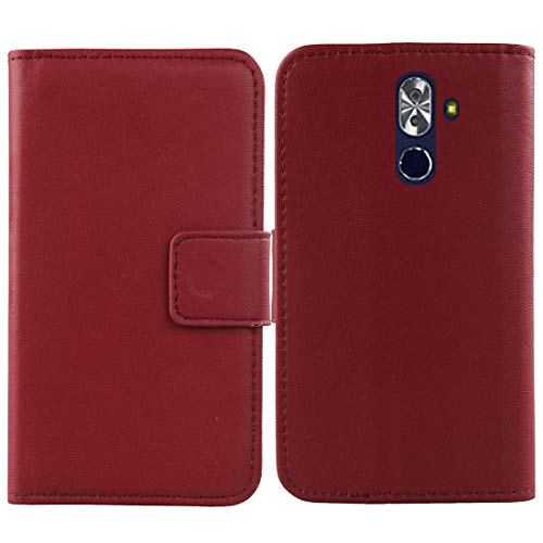 Gukas Design Vera Pelle Case per NUU Mobile G2 5.99" Genuine Flip Cover Custodia Caso Guscio Protettiva Skin con Scomparti Carte Portafoglio (Rosso Scuro)