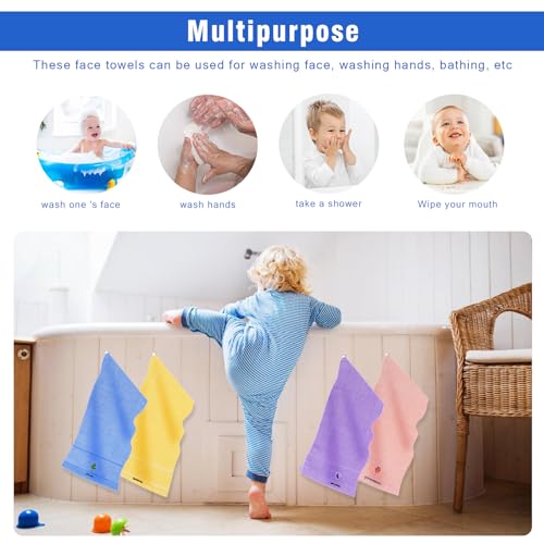 Gukasxi - Asciugamani per il viso per bambini, confezione da 4 pezzi, 100% cotone, da bagno, multicolore, per mani, viso e doccia (25 x 50 cm)