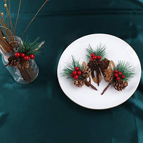➤ Design vivace: questi steli di pino pullulano di un'atmosfera felice e calda. Colore brillante e aspetto chic con pigna, ago di pino e bacche rosse, possono soddisfare la tua ricerca della bellezza, adatto per uso interno ed esterno.