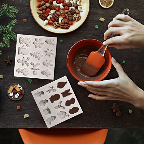 Set di stampi brillanti: 2 pezzi di stampi in silicone per caramelle al cioccolato, per realizzare 23 biscotti alla volta, con forme di pupazzo di neve, Babbo Natale, pinguino, calze, albero di Natale, omino di pan di zenzero, campane, alce, confezione regalo, fiocchi di neve, per feste natalizie e decorazioni per torte fai da te.