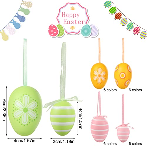 GuKKK Uova di Pasqua Decorazioni, 24 Pezzi Uova Pasquali da Appendere, Colorate Decorazioni Pasquali, Uova di Plastica per Decorazione, Uova di Pasqua Decorazioni di Artigianato