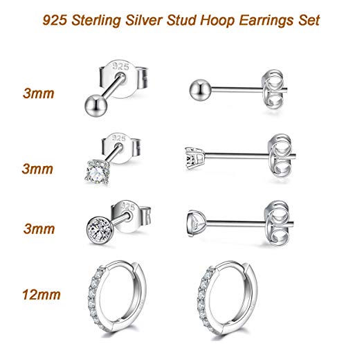 ❤ 【Scelta multipla per l'uso quotidiano】: 4 paia di orecchini in argento ipoallergenici sono disponibili in un set, fornendo diversi stili chic per soddisfare le vostre esigenze quotidiane in diverse occasioni. Questi orecchini a cerchio cartilagine e gli orecchini a sfera di zirconia cubica rotondi sono progettati per l'uso quotidiano. Un set include 1 x 12 mm, 2 x 3 mm CZ orecchini a perno e 1 x 3 mm a sfera. Gli orecchini sono dotati di un retro in argento Sterling.
