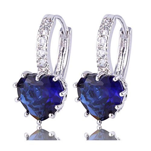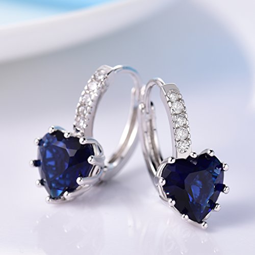 Gulicx, orecchini a cerchio con fascia, in argento Sterling 925, con pietre in zirconia cubica a forma di cuore e argento, colore: Blue, cod. SE03B