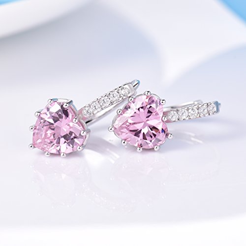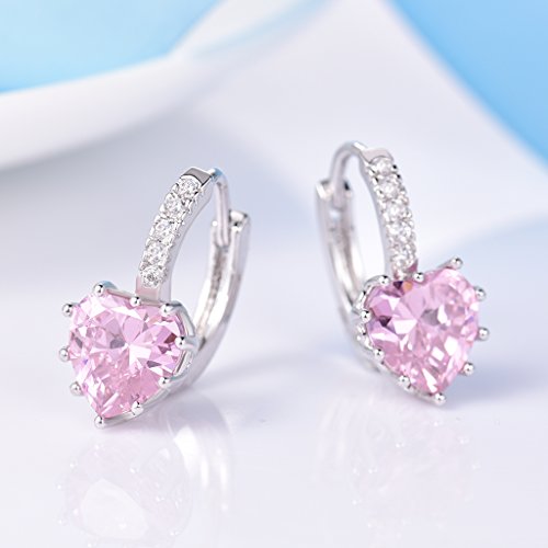 Gulicx, orecchini a cerchio con fascia, in argento Sterling 925, con pietre in zirconia cubica a forma di cuore e argento, colore: Pink, cod. SE03C