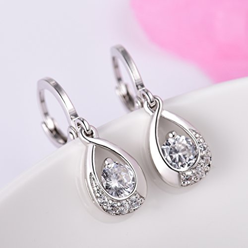 Gulicx, orecchini a pendente da donna, con pietra centrale in zirconia cubica trasparente, con chiusura a monachella