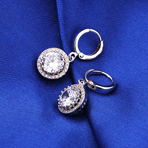 GULICX - Orecchini pendenti in stile vintage, placcati oro bianco 18 kt, con zircone e Ottone, colore: bianco, cod. E040a
