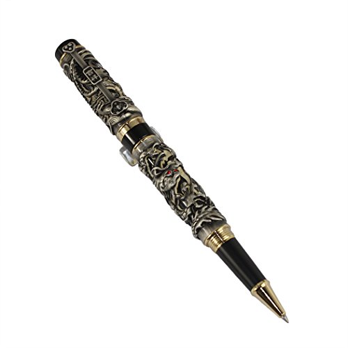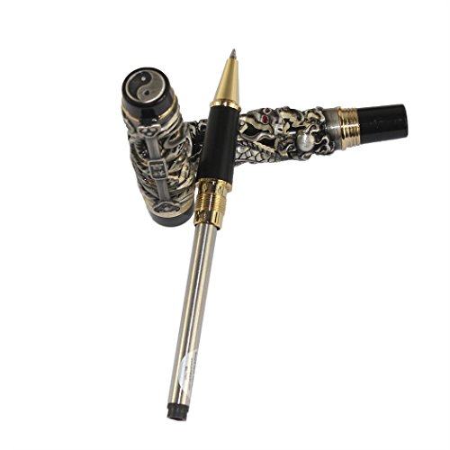 Gullor nobile Dragon e Phoenix Roller con PU penna sacchetto di cuoio - argento antico