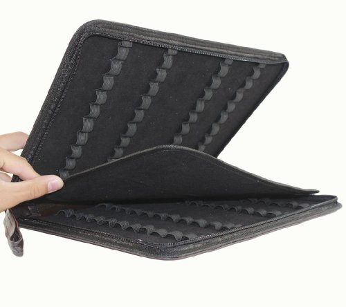 Gullor Caso Penna Crocodile ospita 48 Penne, Grande in Pelle Nera Penna Custodia