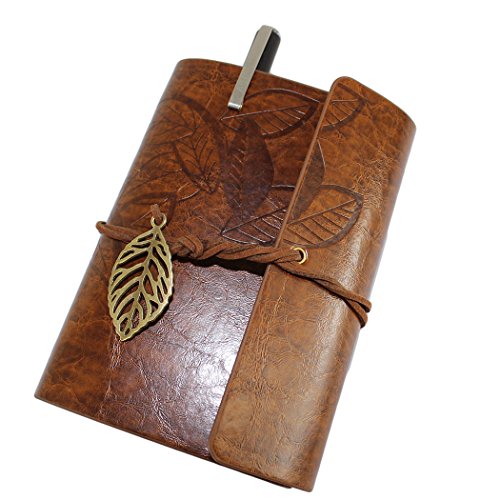 Gullor Retro Vintage Leaves Bound ufficiale notebook di fogli volanti Diario Taccuino con una penna gel - Brown