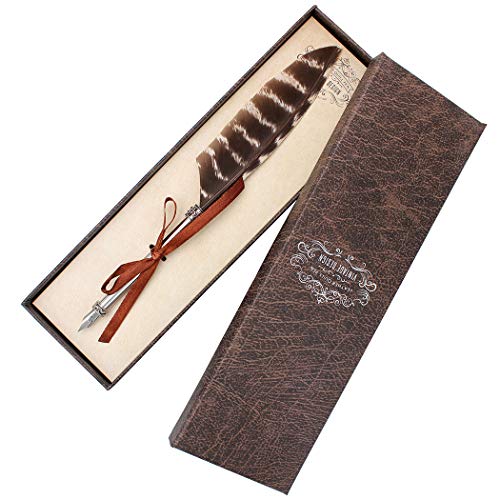 Gullor Vintage Feather Quill Pen, Nuture Feather Dip Pen Con Confezione Regalo,Mmarrone e Bianco