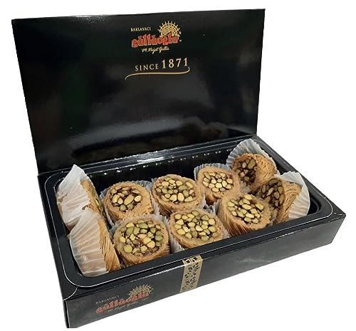 Gulluoglu Best of Mix Assorted Baklava, Freshly Produced and Long Lasting, Traditional Turkish Walnut, Twisted Pistachio Kadaif and Pistachio Wrap Baklava (14pcs (500gr))