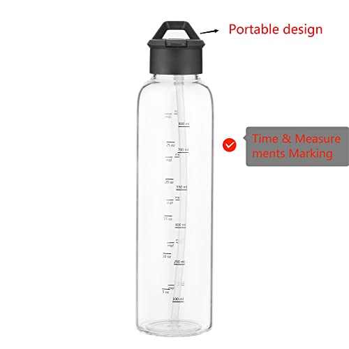 Borraccia in vetro con tempi da bere: 1000 ml di grande capacità con citazioni motivazionali di promemoria del tempo ti aiuta a monitorare e aumentare l'assunzione giornaliera di acqua.