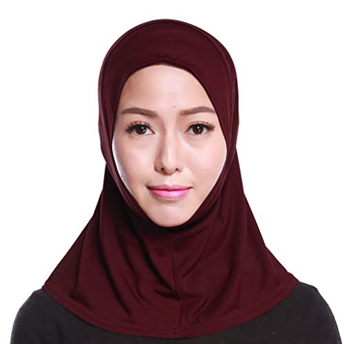 GUMEI Donna Musulmano Cotone Mini Hijab Sciarpa Testa di Colore Solido Copertura Completa Cappuccio Interno Arabo Islamico Wrap Scialle Turbante Cappello Copricapo