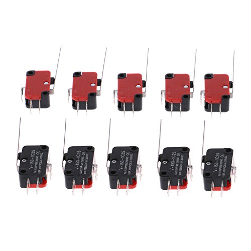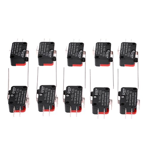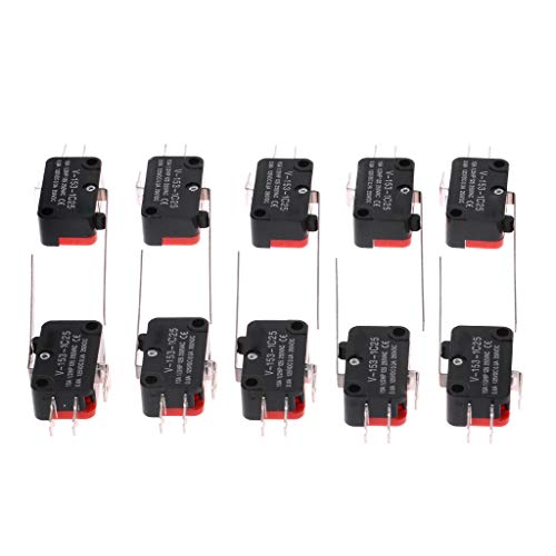 GUMEI 10 Pezzi V-153-1C25 Interruttori di fine Corsa Cerniera Lunga Diritta Microinterruttore SPDT a Leva