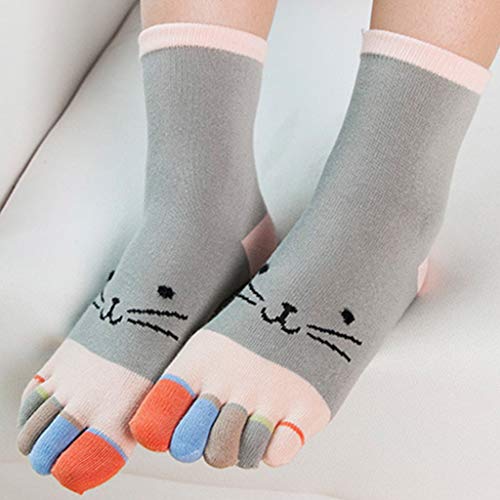 GUMEI Women Cartoon Meow Cat Cotton Toe Socks Candy Colorful Five Finger Sport Hosiery