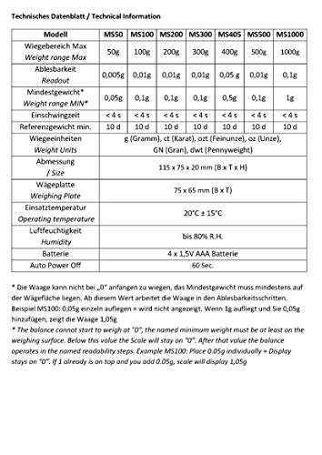 GundG MS - Bilancia di precisione digitale tascabile, per oro/monete, 500g/0,01g, colore: Nero