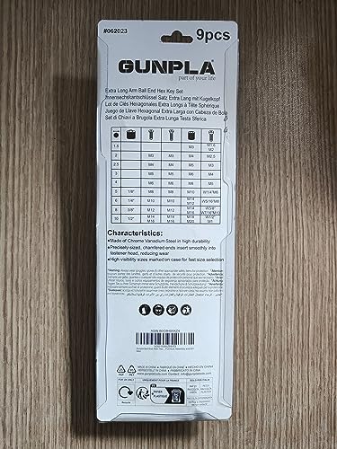 Gunpla Multicolour Chiavi a Brugola Testa Sferica 9 Pezzi Metriche - Set di Chiavi a Brugola/Chiavi di Allen Professionali da 1,5 mm a 10 mm, CR-V