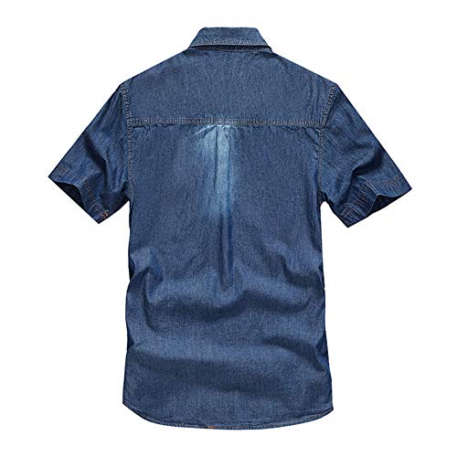 GUOCU Uomo Adolescenti Estate Classiche Camicia di Jeans a Maniche Corte Camicie Cargo in Denim Tinta Unita con Colletto rovesciato Bottone Giù Tinta Unita Casual Blu Scuro L