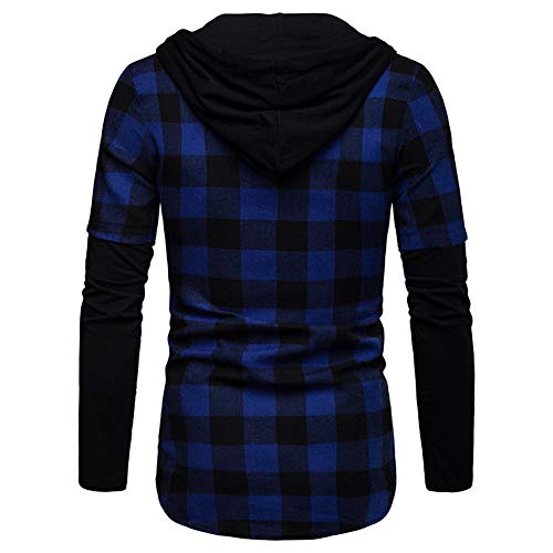GuoCu Camicia a Manica Lunga Casual da Uomo con Cappuccio Camicia a Quadri Felpa con Cappuccio Camicia Hooded da Boscaiolo Plaid Flanella A Quadri Camicia da Lavoro,Bottoni Cardigan Blu M