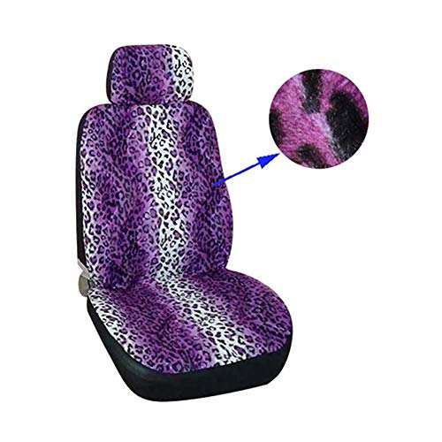 GUOCU Coprisedile Singolo per Auto, Pelliccia Artificiale Leopardo, Dimensione Universale, Accessori Auto Interno Viola 2 Pezzi