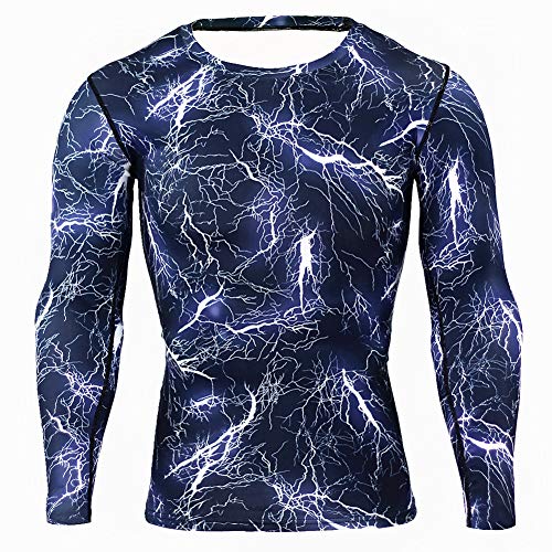 GUOCU Maglietta Uomo Manica Lunga Morbido Maglia Termica Compression Asciugatura Rapida da Corsa Maglia Ciclismo Dimagrante,Blu2,XXL