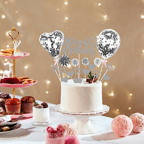 Decorazione per torta di compleanno in argento, decorazione perfetta per feste di compleanno in argento e anche un ottimo regalo a sorpresa per ogni festa di compleanno. Adatto per decorare torte, cupcake, muffin, gelatina, pane, frutta, ecc.