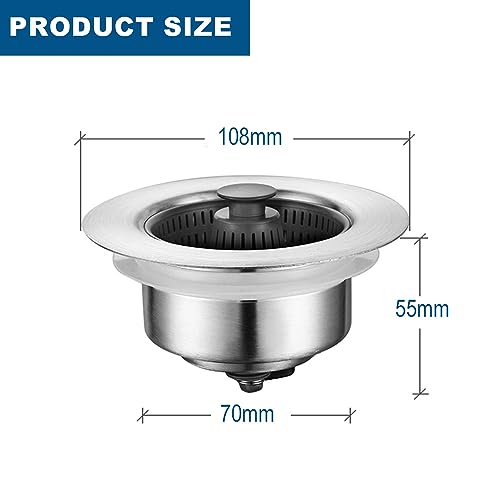 【AMPIA COMPATIBILITÀ】 Questo filtro per lavello da cucina pop-up da 72 mm è adatto per la maggior parte dei lavelli con troppopieno con tappo e controllo pop-up. Adatto a vari luoghi come ristoranti, hotel, mense e soprattutto nel lavello della tua cucina.