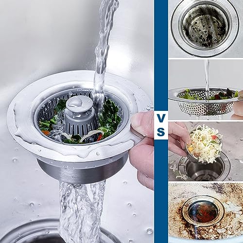 【ALTA QUALITÀ】 Il filtro di scarico del lavello della cucina è realizzato in acciaio inossidabile 304 e non arrugginisce nemmeno dopo anni di utilizzo. Il materiale ABS del filtro raccoglie i residui di cibo e non si deforma nemmeno dopo un uso prolungato.