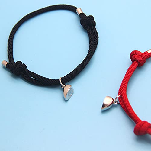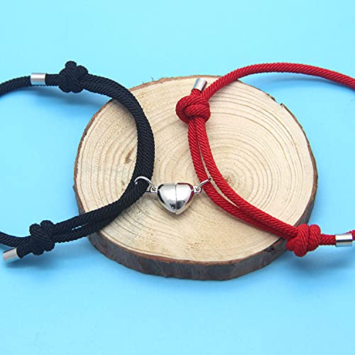 GUOSHENG Set di braccialetti magnetici per coppie Attrazione reciproca Corda fatta a mano per 2 braccialetti intrecciati abbinati Voti di amore eterno Regalo di gioielli (cuore-1)