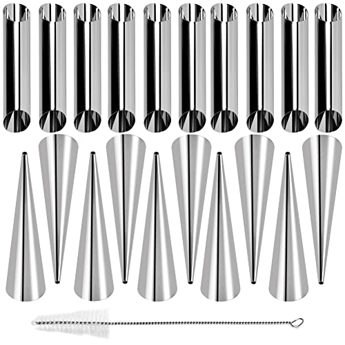 Guowall Cannoli Stampi Set, 21 Pezzi di Cannoli in Acciaio Inossidabile Stampo per croissant cremoso con spazzola