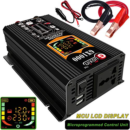 GUOXIN Power Inverter 12V 220V 1000W Inverter Auto Invertitore di Potenza Trasformatore di Potenza Convertitore DC 12V in AC 220V 230V 240V Schermo LCD Display USB Caricatore