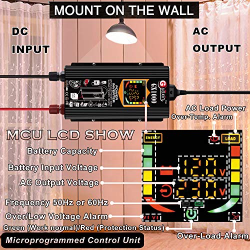 ✅【MCU Colorato LCD Display 】 microprogrammato LCD unità di controllo, realizza lo scambio di informazioni uomo-azienda, mostra lo stato di funzionamento in tempo reale dell'inverter, come alimentazione a batteria, tensione di ingresso batteria, tensione di uscita AC, carico di uscita, frequenza di uscita, stato di inverter di potenza compreso il lavoro normale, o funzione di protezione: sovratensione, sovraccarico, sovratensione, sottotensione, surriscaldamento, protezione inversione di polari