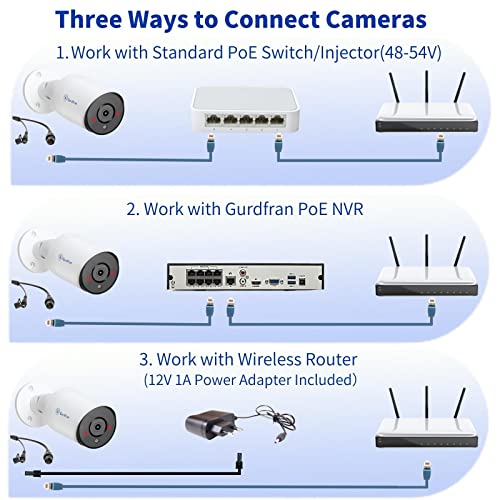 Gurdfran 4K Telecamera IP PoE di Sorveglianza Esterno con Audio, Rilevamento di Persone, 8MP Telecamera IP di Sicurezza Interno con Visione Notturna IR 30m, Accesso Remoto, IP66, Alimentatore Incluso