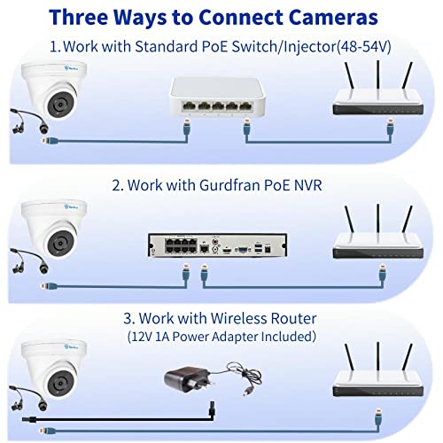 【Plug e Play, Compatibile con PoE NVR】Se possiedi un NVR PoE, la connessione delle telecamere IP sarà facile e veloce. Questa telecamera di sorveglianza PoE necessita di un solo cavo di rete per la connessione a un NVR PoE o a uno switch PoE, eliminando il fastidio del cablaggio. Un unico cavo di rete può trasportare sia alimentazione che video. La telecamera di sorveglianza è compatibile con la maggior parte degli NVR. (Non telecamera senza fili/wifi)