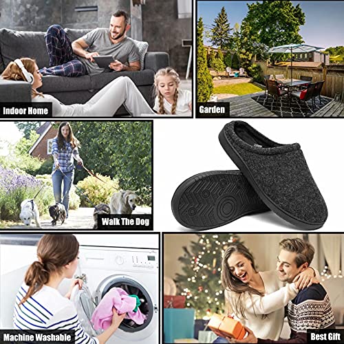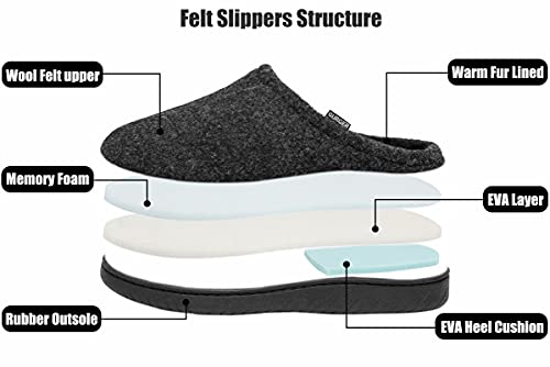 GURGER - Pantofole da uomo e donna in feltro di lana, foderate in memory foam con suola in gomma, T1 Nero, 37/37.5 EU