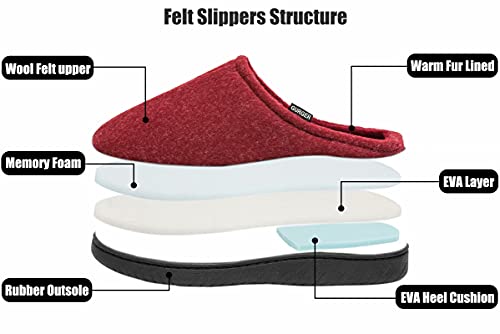 GURGER - Pantofole da uomo e donna in feltro di lana, foderate in memory foam con suola in gomma, T3 rosso., 41/42 EU