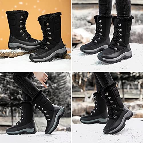 GURGER Stivali da Neve Donna Invernali Impermeabile Pelliccia Stivali Caldo Foderato Stivali Comodo Antiscivolo Scarpe Nero Taglia 38