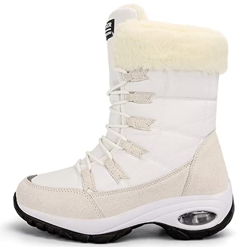 GURGER Stivali Donna Invernali Impermeabili Stivali da Neve Donna Doposci Alti Pelliccia Calda Dopo Sci Stivaletti Inverno Scarpe da Trekking Bianco 40