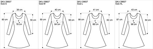 Il vestito è sagomato e arriva fino a appena sopra il ginocchio