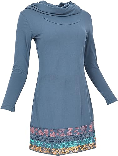 GURU-SHOP, Mini Abito Boho Patchwork con Collo a Scialle, Cotone, Abiti Corti