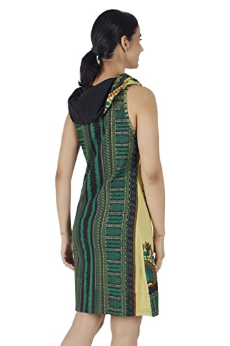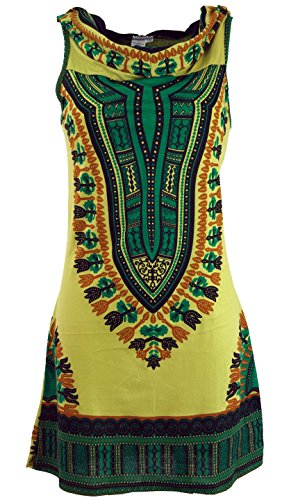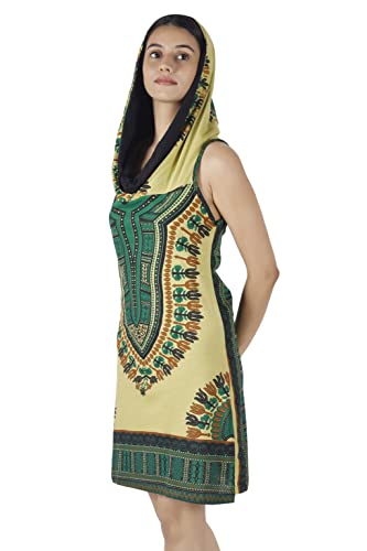 Guru-Shop, Cappuccio Dashiki Mini Abito, Abito del Festival di Goa, Limone, Cotone, Dimensione Indumenti:S/M (34/36), Vestiti Corti