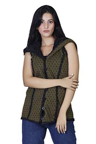 Guru-Shop, Goa Gilet con Ampio e Soffice Cappuccio 'Flower of Life', Oliva, Cotone, Dimensione Indumenti:M (38), Giacche e Gilet Boho
