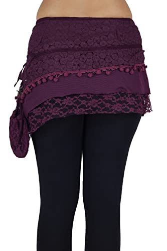 GURU-SHOP, Goa Mini Gonna, Gonna a Portafoglio, Cacheur, Melanzana, Cotone, Dimensione Indumenti:M/L (40), Cacheure e Lusinghe all'Anca