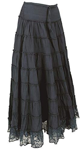 Guru-Shop, Hippierock, Boho Gonna a Passo Boho con Pizzo, Maxi Gonna Convertibile Hippie Chic, Gonna Flamenco, Abito Estivo, Nero, Cotone, Dimensione Indumenti:M / L (40), Gonne Lunghe