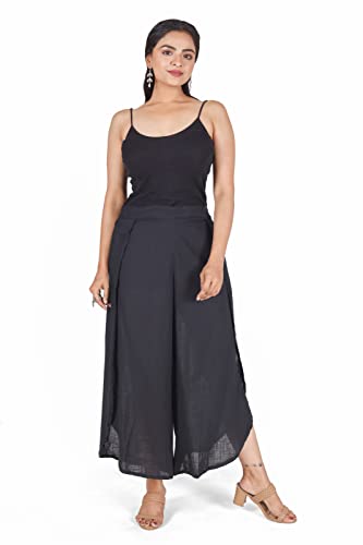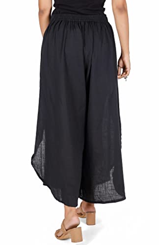 Guru-Shop, Pantaloni da Palazzo, Culottes, Pantaloni Estivi Aperti, Neri, Cotone, Dimensione Indumenti:M (38), Pantaloni Lunghi