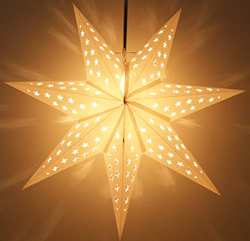 Guru-Shop Pieghevole Avvento Stella di Carta Illuminata, Poinsettia 60 cm - Austrinus Bianco, Stelle di Carta - Monocolore