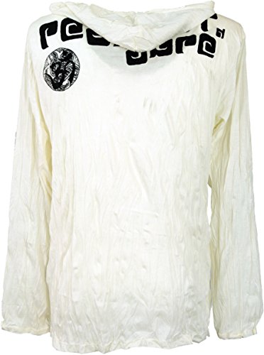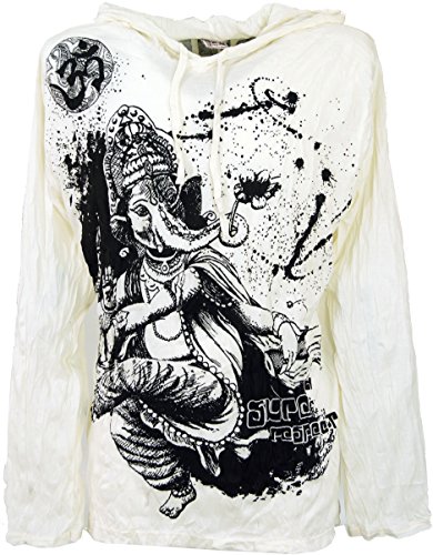 Guru-Shop, Sicura Camicia a Maniche Lunghe, Camicia con Cappuccio Dancing Elefant, Bianca, Cotone, Dimensione Indumenti:XL, Magliette 'Sure'