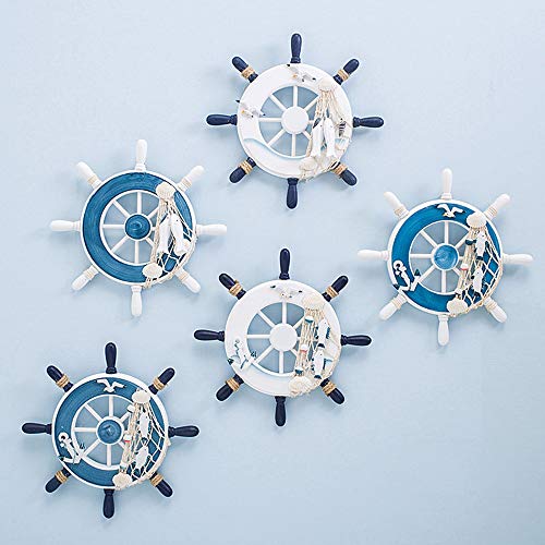 Gurxi Barca Volante Decorazione della Parete del Timone Ruota in Legno da Parete Decorazioni da Parete Decor Nautico Barca Volante Volante in Legno con Conchiglie 22,5 cm per Decorazioni Murali