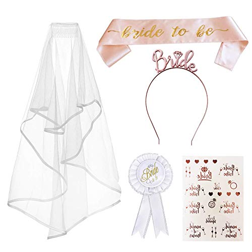 Gurxi 5 Pezzi Accessori con Decoro Velo Bride to Be Sposa di Essere Bride to be Satin Sash Decorazione Sash Badge Tiara Tatuaggi per Bride to be Bridal Shower Team Bride